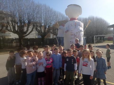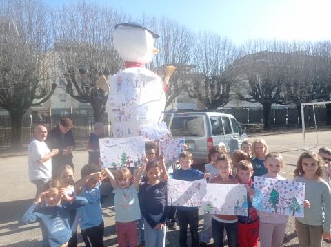 Vendredi 27 février, sous un magnifique soleil, tous les enfants de l'école ont pu accrocher leur dessin sur le bonhomme carnaval. Thème choisi cette année : l'hiver !